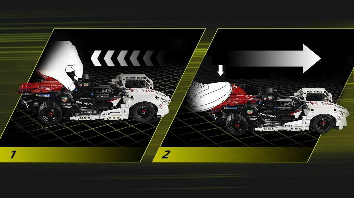 De LEGO® Technic™ pull-back motor geeft raceauto's een acceleratieboost. Trek gewoon terug en laat los om de auto naar de pole position te zien scheuren!