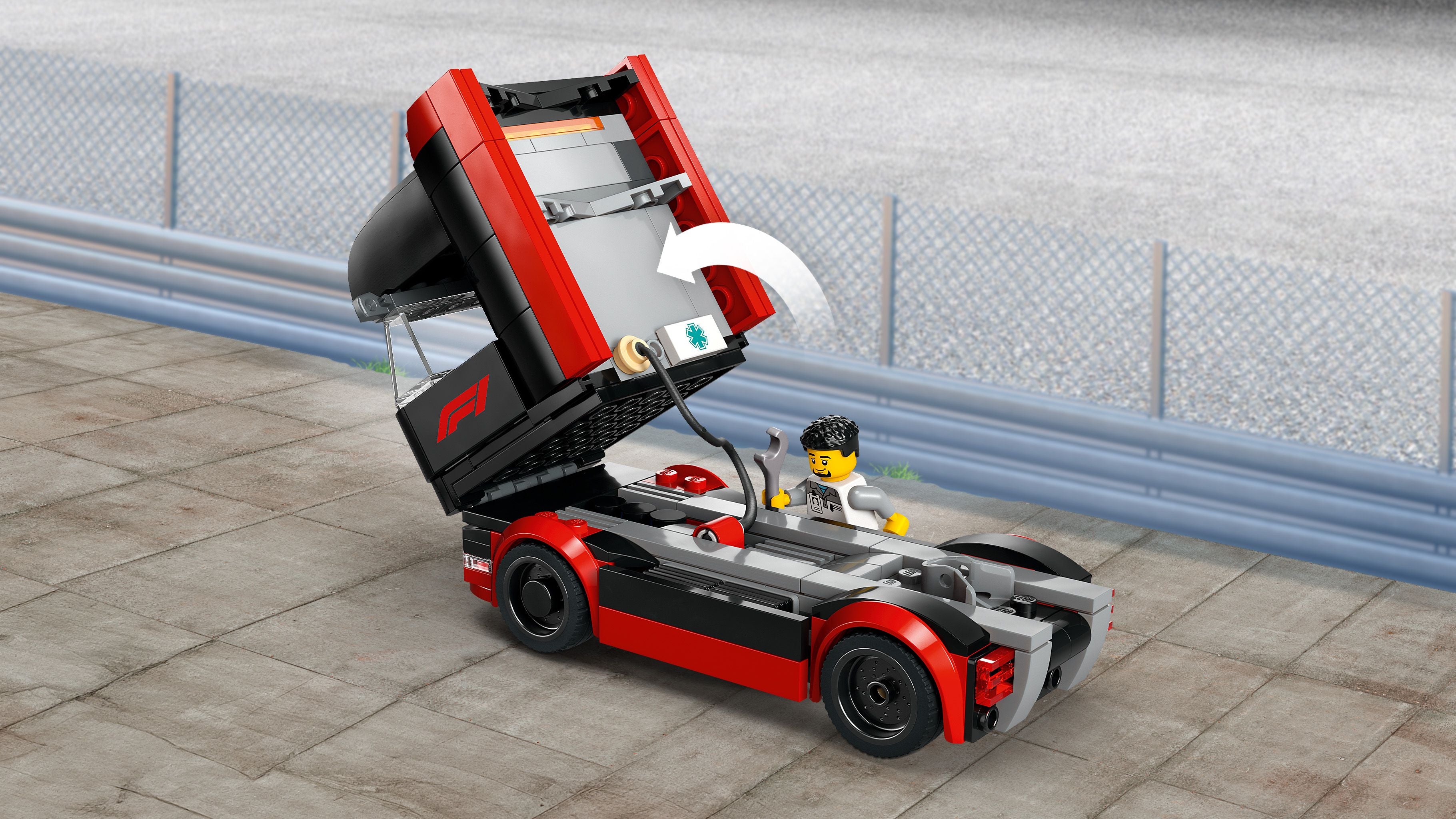 - Grote F1 truck: De indrukwekkende F1 truck is perfect om de racewagens te vervoeren naar de volgende Grand Prix.